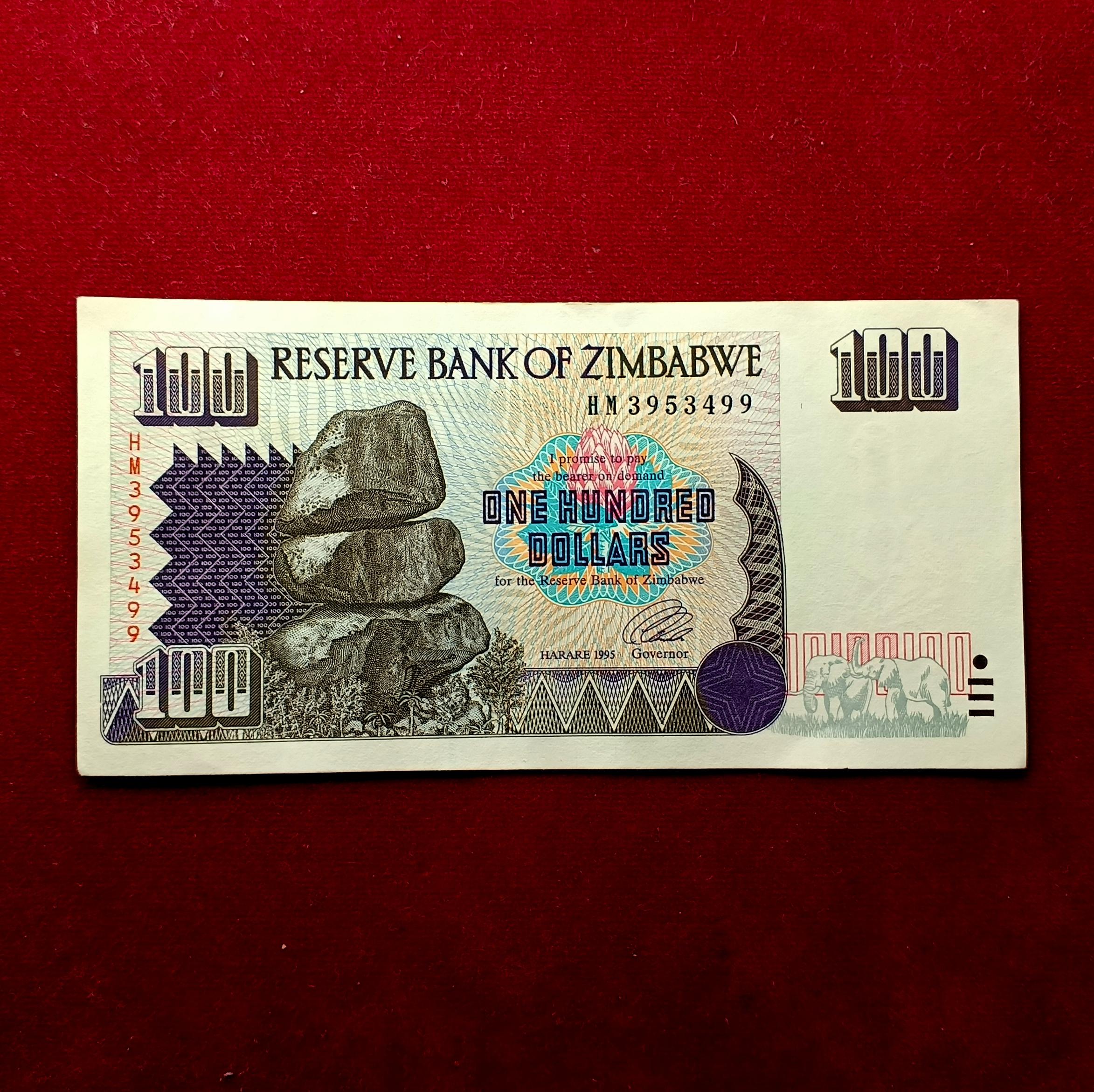 | Zimbabwe 100 Dollars Matopos National Park 1995 Banknote | |